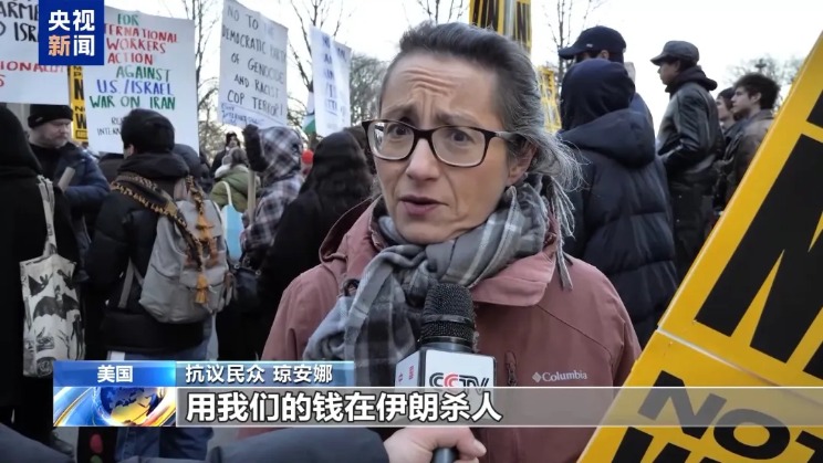 参加抗议的美国民众表示,美国政府应结束对伊朗的打击,伊朗人民的事务应该由伊朗自己决定。
