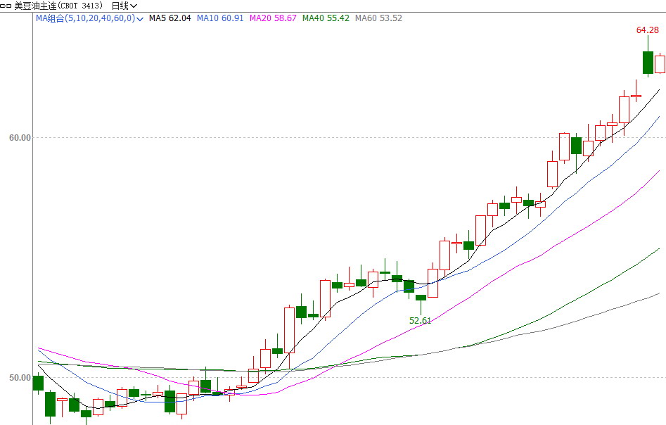 2026年以来,CBOT大豆期货价格上涨超过100美分/蒲式耳,主要上涨驱动力是需求端向好以及宏观因素的外溢效应。支撑因素包括:美国生物燃料政策有望出台,利好美豆油需求,进而提振美豆表现;美豆出口预期改善;受天气因素影响,巴西大豆收获进度偏慢,巴西南部及阿根廷有减产预期;美国最高法院裁定特朗普政府全面关税政策违法,但随后特朗普宣布重新加征关税,盘面已经对贸易摩擦的长期影响进行计价;中东局势紧张,伊朗关闭霍尔木兹海峡,原油价格飙升,对油脂市场亦有带动。