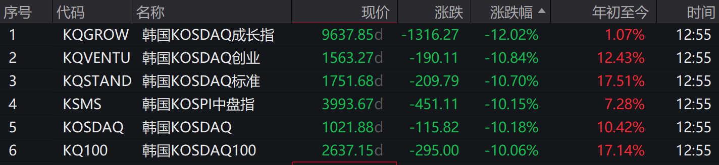 3月4日开盘,韩国综合指数低开3.44%后持续下挫,一度下探至12.65%;韩国KOSDAQ低开2.25%后同样下挫至14.17%。仅本周两个交易日内,韩股市值已蒸发近4300亿美元。若跌势持续,韩国综合指数或将录得自2008年以来最大单日跌幅。