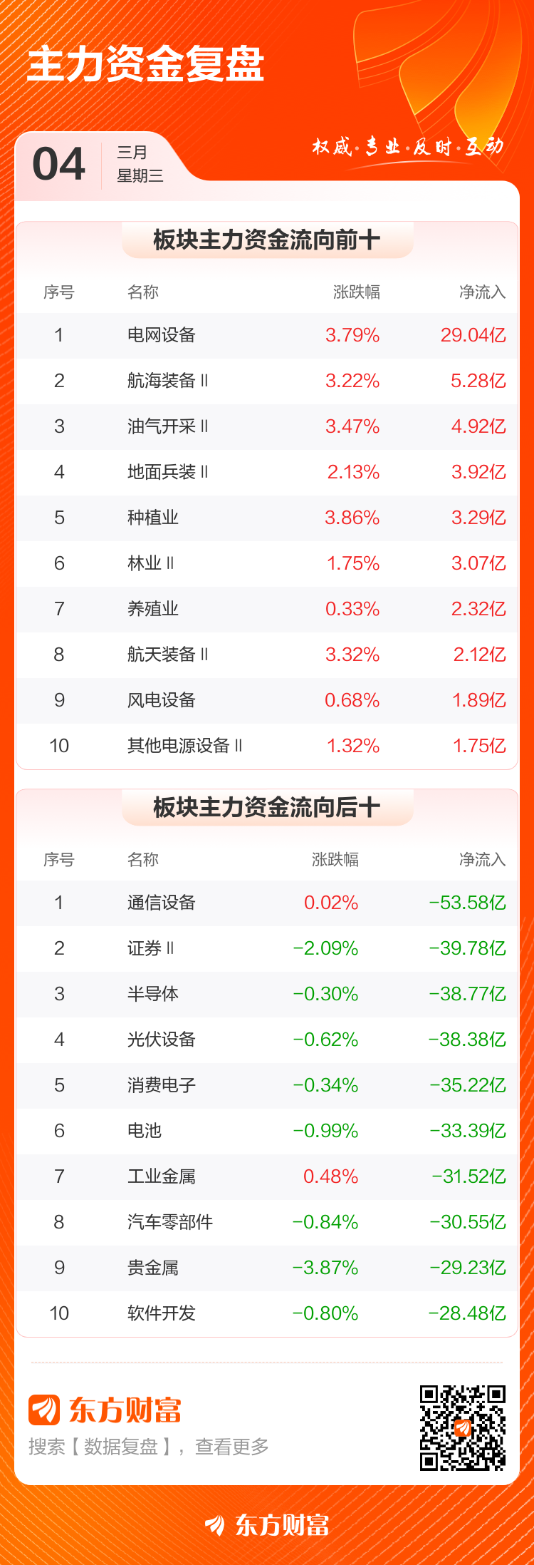 3月4日,沪指跌0.98%,深成指跌0.75%,创业板指跌1.41%。两市成交额2.37万亿,较上个交易日缩量7638亿。数据显示,今日大盘主力资金净流出710.71亿。电网设备、航海装备Ⅱ、油气开采Ⅱ等板块主力资金流入排名居前,其中电网设备净流入29.04亿元。
