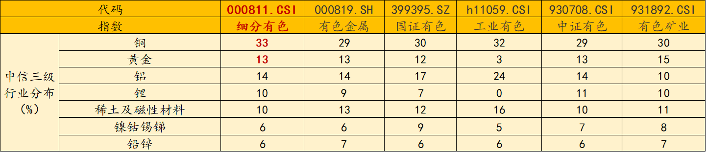2、“金铜含量”同类领先:有色ETF汇添富(159652)标的指数铜含量达33%,金含量达13%,金铜含量高达45%,同类领先!