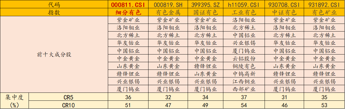 【有色ETF汇添富(159652)标的指数前十大成分股】