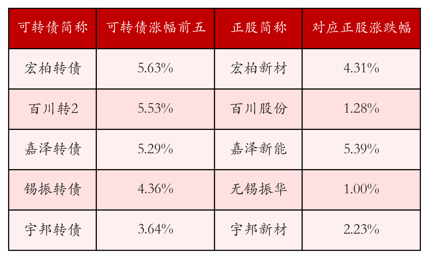 南财智讯3月4日电,盘后数据显示,债市方面,中证转债指数收跌0.23%,报513.63,成交额为778.29亿元。可转债方面,今日共成交364只可转债,其中151只收涨,1只收平,212只收跌。具体来看,16只可转债涨幅超过2%。其中宏柏转债(111019)涨5.63%,百川转2(127075)涨5.53%,嘉泽转债(113039)涨5.29%。今日有25只可转债跌幅超2%,利扬转债(118048)跌11.34%,天壕转债(123092)跌7.43%,天准转债(118062)跌7.12%。存在交易量的可转债所对应的正股中,99只收涨,6只收平,259只收跌。具体来看,7只可转债对应正股涨幅超过5%,其中,没有正股涨停。今日有10只可转债对应正股跌幅超过5%,盛航股份(001205)跌停,收跌10.01%。同时所对应的可转债:盛航转债(127099)同跌1.92%。