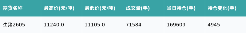 生猪主力合约收跌0.31%