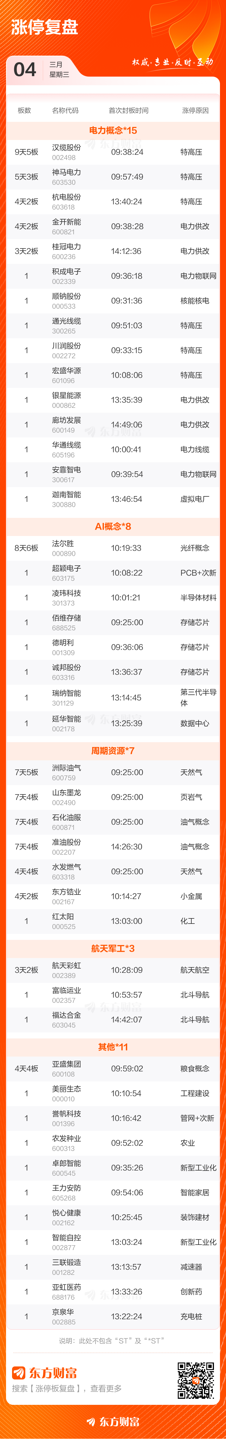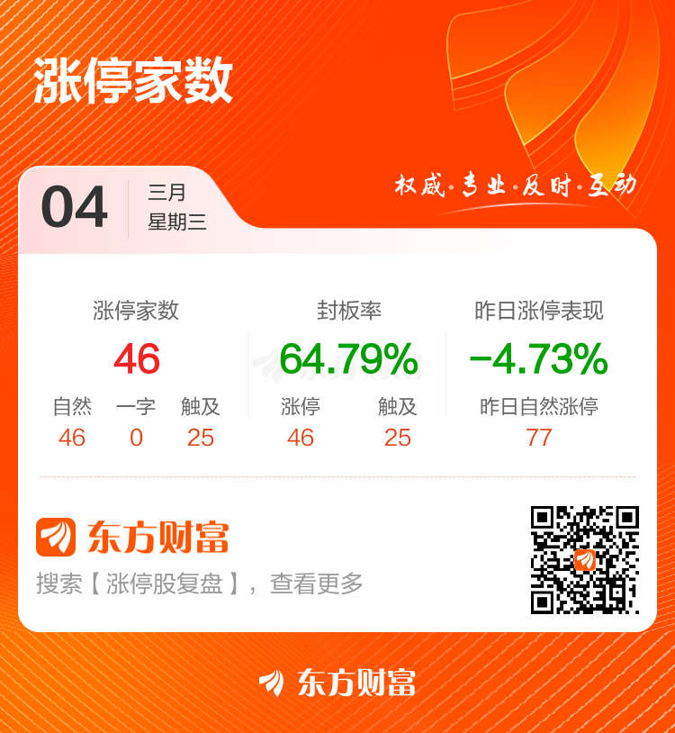 3月4日涨停复盘:46股涨停 汉缆股份9天5板