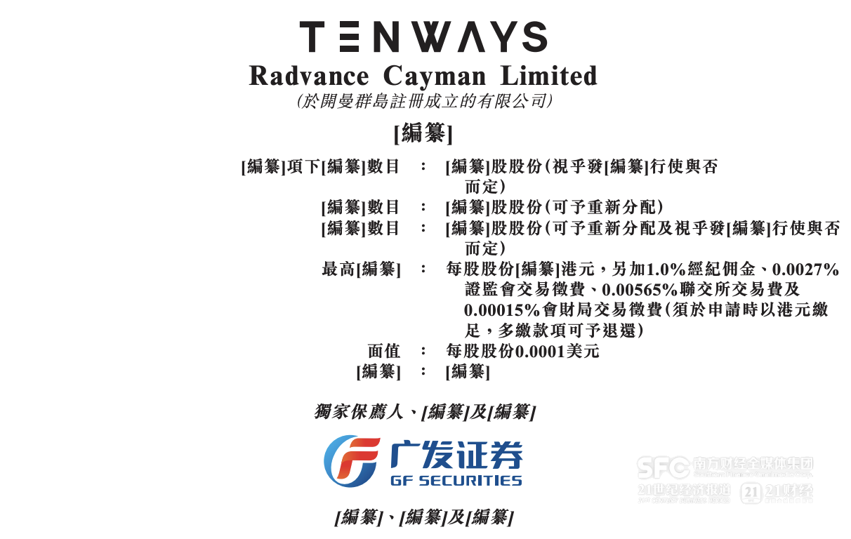 近日,扎根欧洲市场的电助力自行车(E-Bike)品牌TENWAYS的运营主体Radvance Cayman Limited,正式向港交所递交招股说明书,拟主板挂牌上市,广发证券担任独家保荐人。