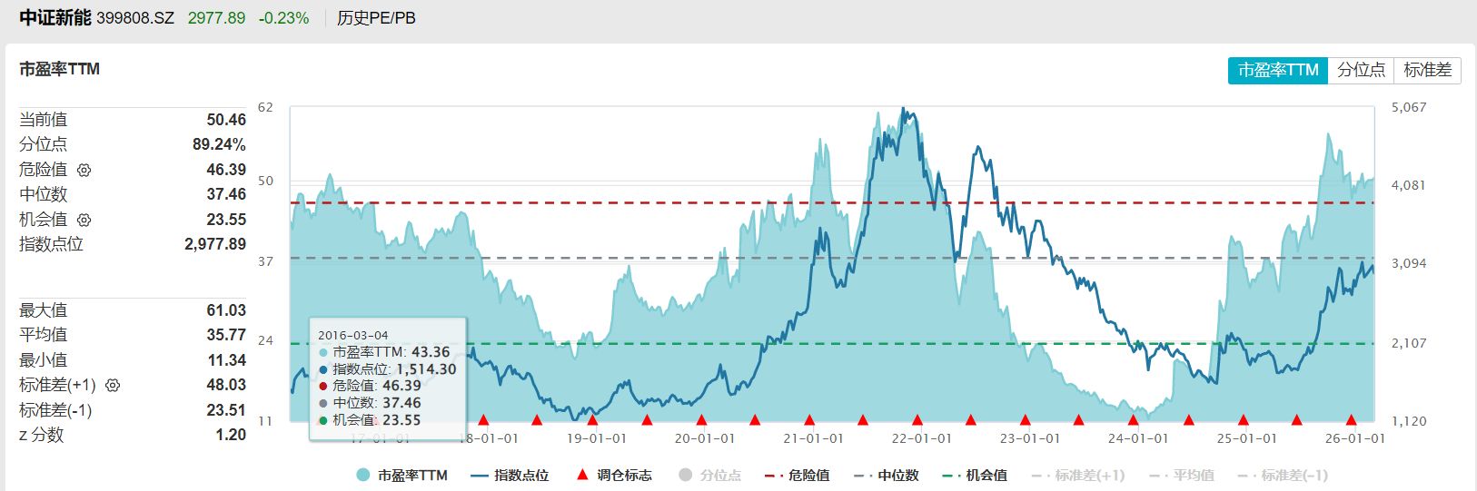 最后再对比两个指数目前的估值水平,Wind数据显示,中证新能源指数目前的市盈率TTM回升到了近10年90%左右分位,而中证内地新能源主题指数目前的市盈率TTM还处在近10年40%左右分位。