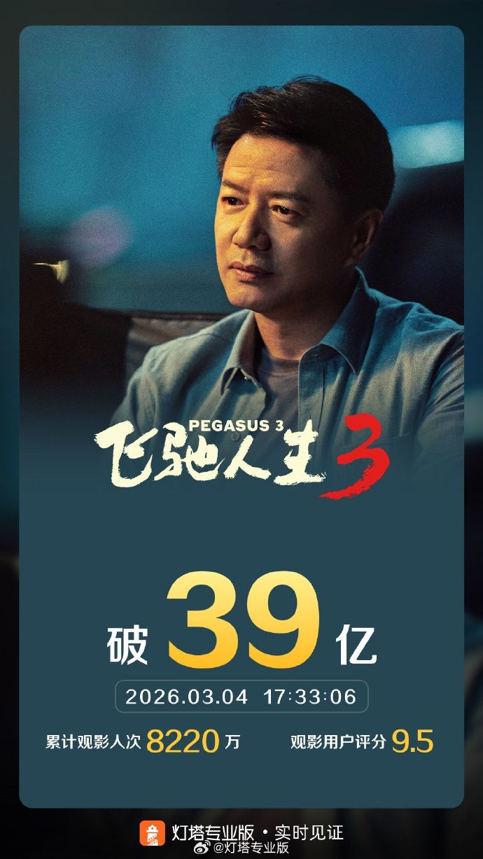 据灯塔专业版实时数据,截至3月4日17时33分,影片《飞驰人生3》票房突破39亿。