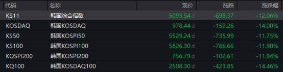 受中东紧张局势升级影响,亚太地区主要股市周三(3月4日)普遍下跌。当天,韩国股市大幅下挫,主要指数跌幅超过10%,盘中韩国交易所一度启动KOSDAQ指数熔断机制。截至收盘,韩国综合指数跌12.06%,韩国KOSDAQ指数跌14%。