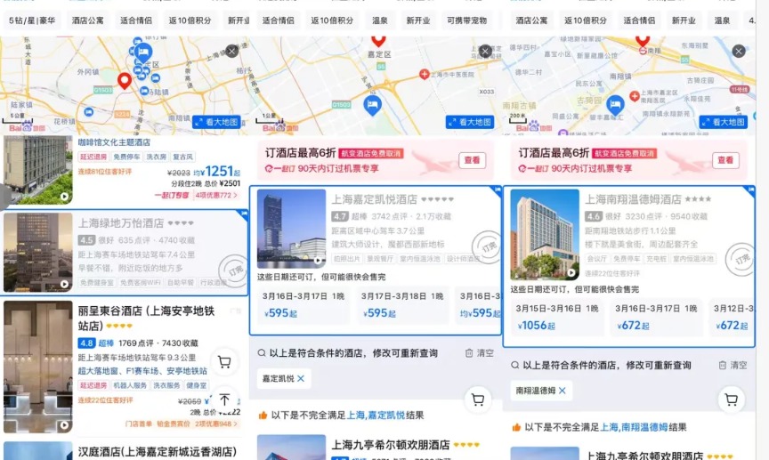 此外,赛场周边的住宿同样火热,3月13日至15日比赛期间,上海国际赛车场所在地嘉定区酒店价格出现一定程度的上浮,多家已处于“满房”状态,其中包括绿地万怡酒店、嘉定喜来登酒店、嘉定凯悦酒店、南翔温德姆酒店等。