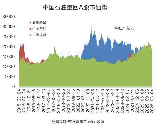 自2019年以来,A股市值冠军基本上在工商银行和贵州茅台之间变换。2025年8月6日,农业银行收盘时A股市值升至2.11万亿元,超越工商银行,历史上首次夺得A股市值冠军宝座。截至2026年3月3日,农业银行坐上A股市值冠军宝座长达136个交易日。