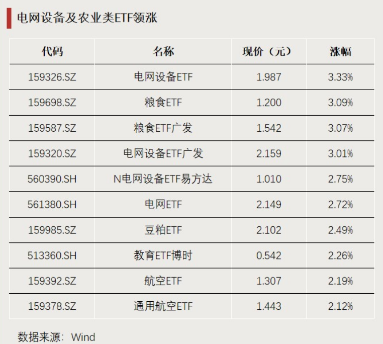 此外,A股种植业、林业等农业板块集体拉涨,部分农业主题ETF涨幅居前。