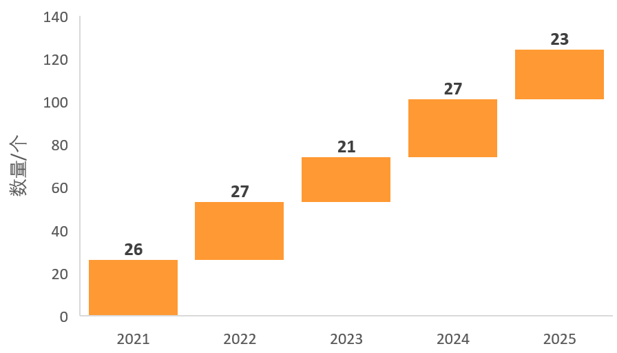 上世纪90年代起,药品附条件上市审批在美国、欧盟、日本等多国先后实施,成为一种国际上通行的审批方式,国内亦在2017年开始批准药品附条件上市申请。据丁香园insight数据库,2021年至2025年,每年均有20多款,共计超120款药物通过该方式获批。