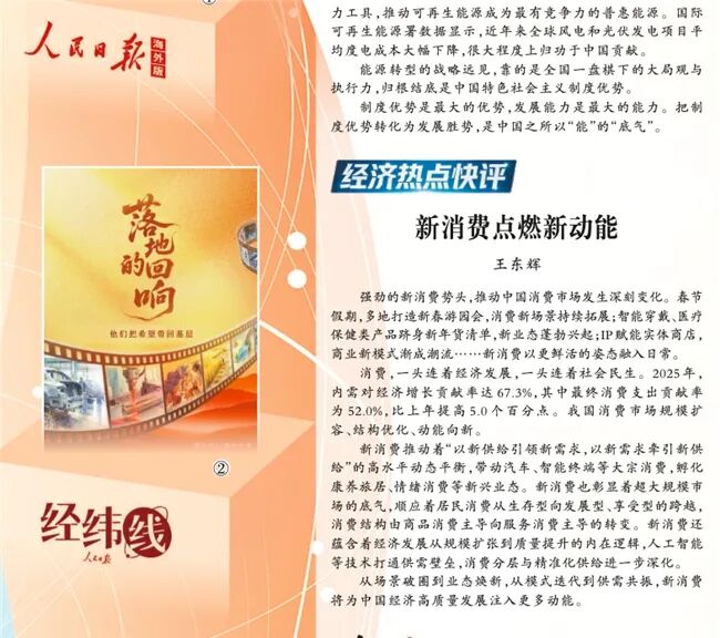 3月4日,人民日报刊发经济热点快评《新消费点燃新动能》。