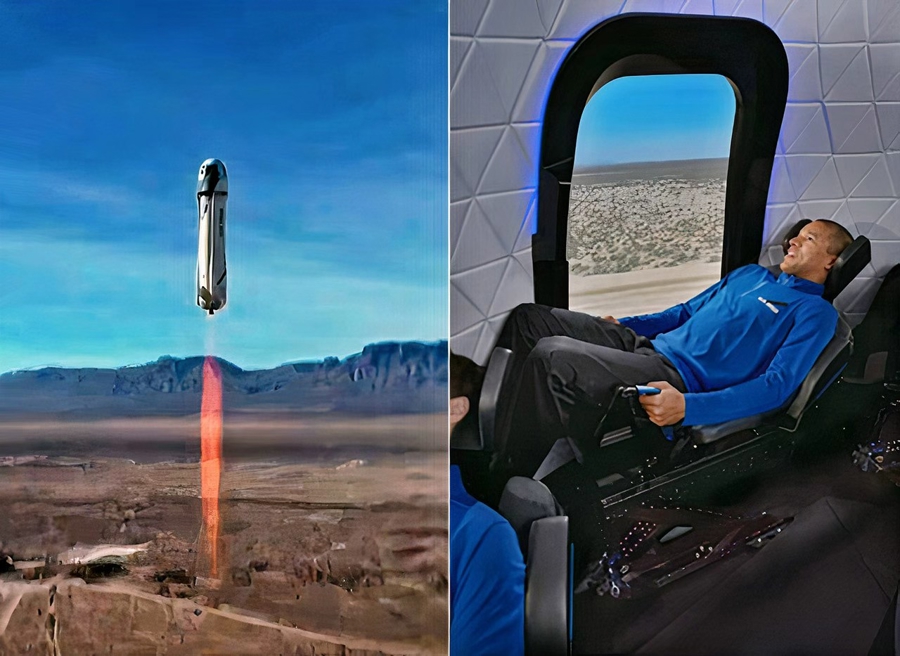 “新谢泼德”亚轨道飞行器升空与乘员舱内部