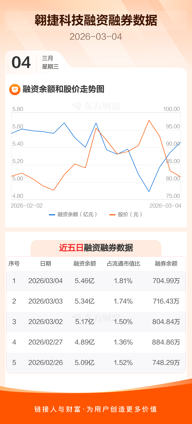 交易所最新数据显示,翱捷科技于2026年3月4日获融资买入5559.18万元,融资偿还4406.64万元,当日融资净买入1152.54万元。目前,该股融资余额5.46亿,占流通市值比例为1.81%。