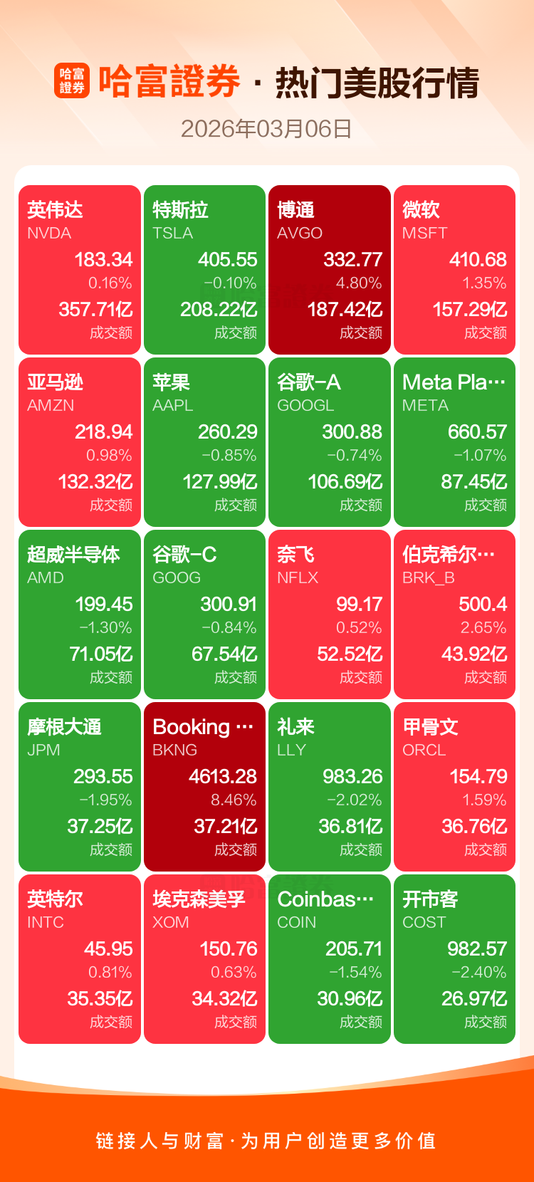 英伟达涨0.16%,特斯拉跌0.10%,博通涨4.80%,微软涨1.35%,亚马逊涨0.98%,苹果跌0.85%,谷歌-A跌0.74%,Meta Platforms Inc-A跌1.07%,超威半导体跌1.30%,谷歌-C跌0.84%。