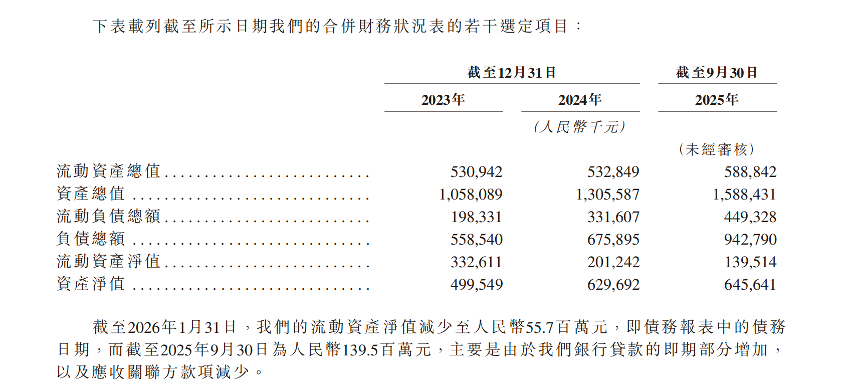 财务数据显示,公司的银行贷款总额从2023年末的7800万元,大幅攀升至2025年9月30日的2.3亿元;而截至最新确定债务的实际可行日期(2026年1月31日),这一数字已激增至4.8亿元。伴随借款规模扩大的,是流动负债总额从2023年末的2亿元升至2025年9月末的4.5亿元。