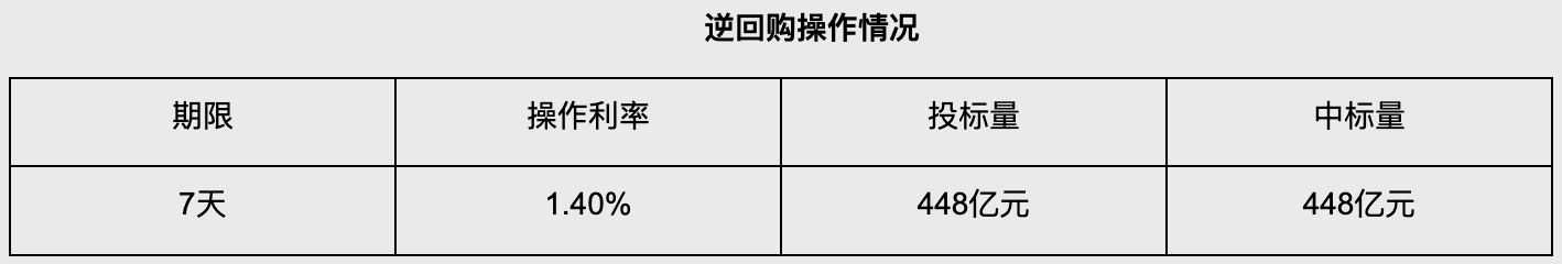 央行今日开展448亿元7天期逆回购操作