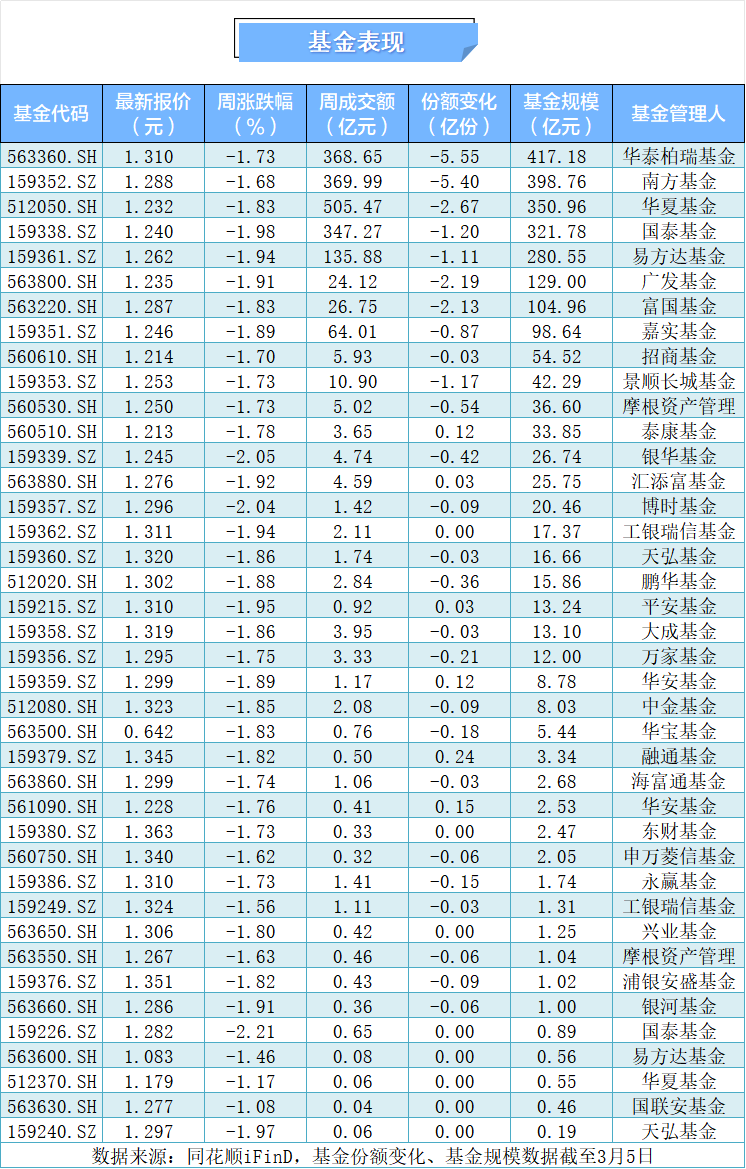 本周40只中证A500基金下挫,国泰领跌丨A500ETF观察