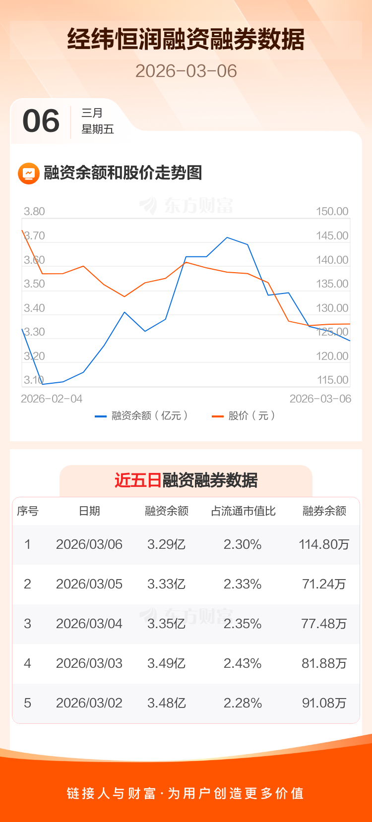 交易所最新数据显示,经纬恒润于2026年3月6日获融资买入2133.40万元,融资偿还2595.28万元,当日融资净偿还461.89万元。目前,该股融资余额3.29亿,占流通市值比例为2.30%。