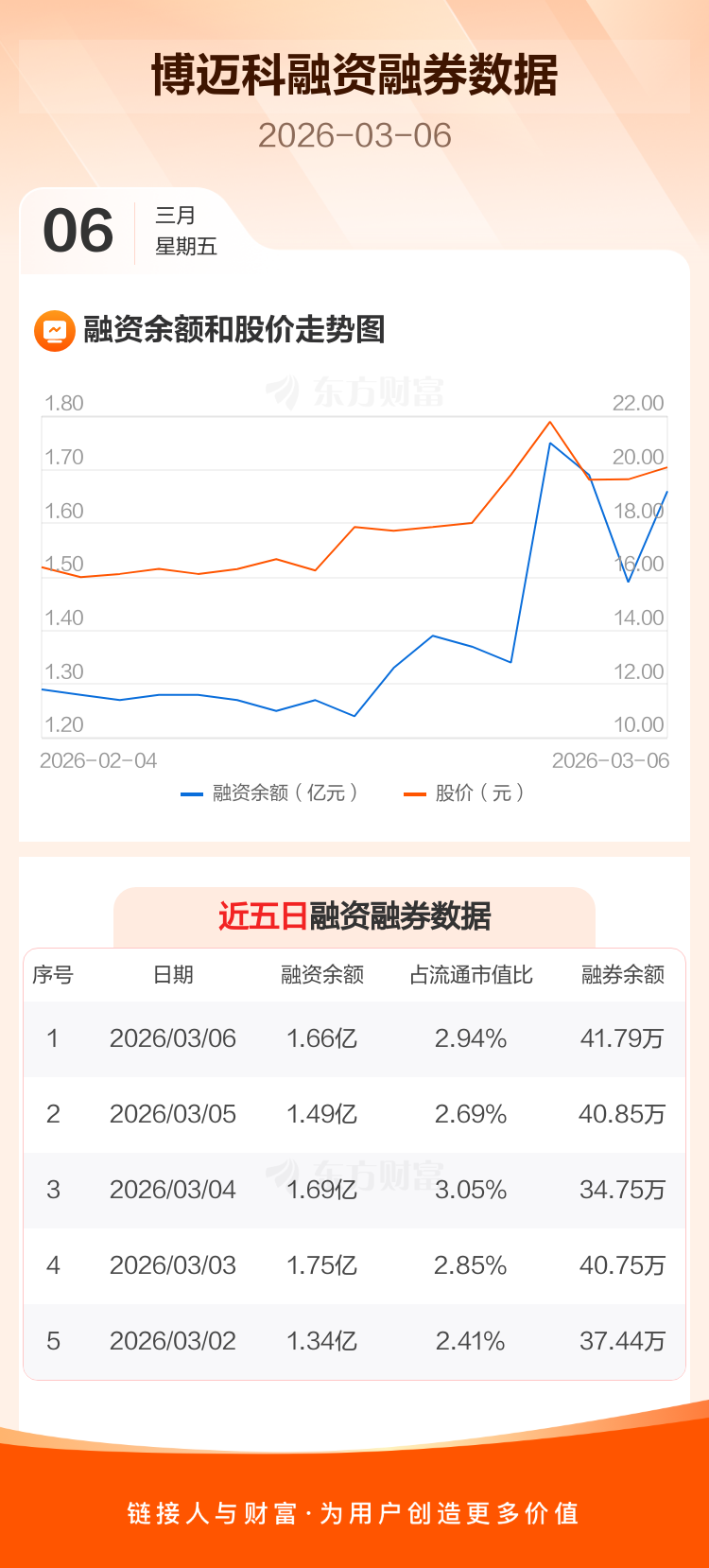 交易所最新数据显示,博迈科于2026年3月6日获融资买入4101.88万元,融资偿还2387.92万元,当日融资净买入1713.97万元。目前,该股融资余额1.66亿,占流通市值比例为2.94%。