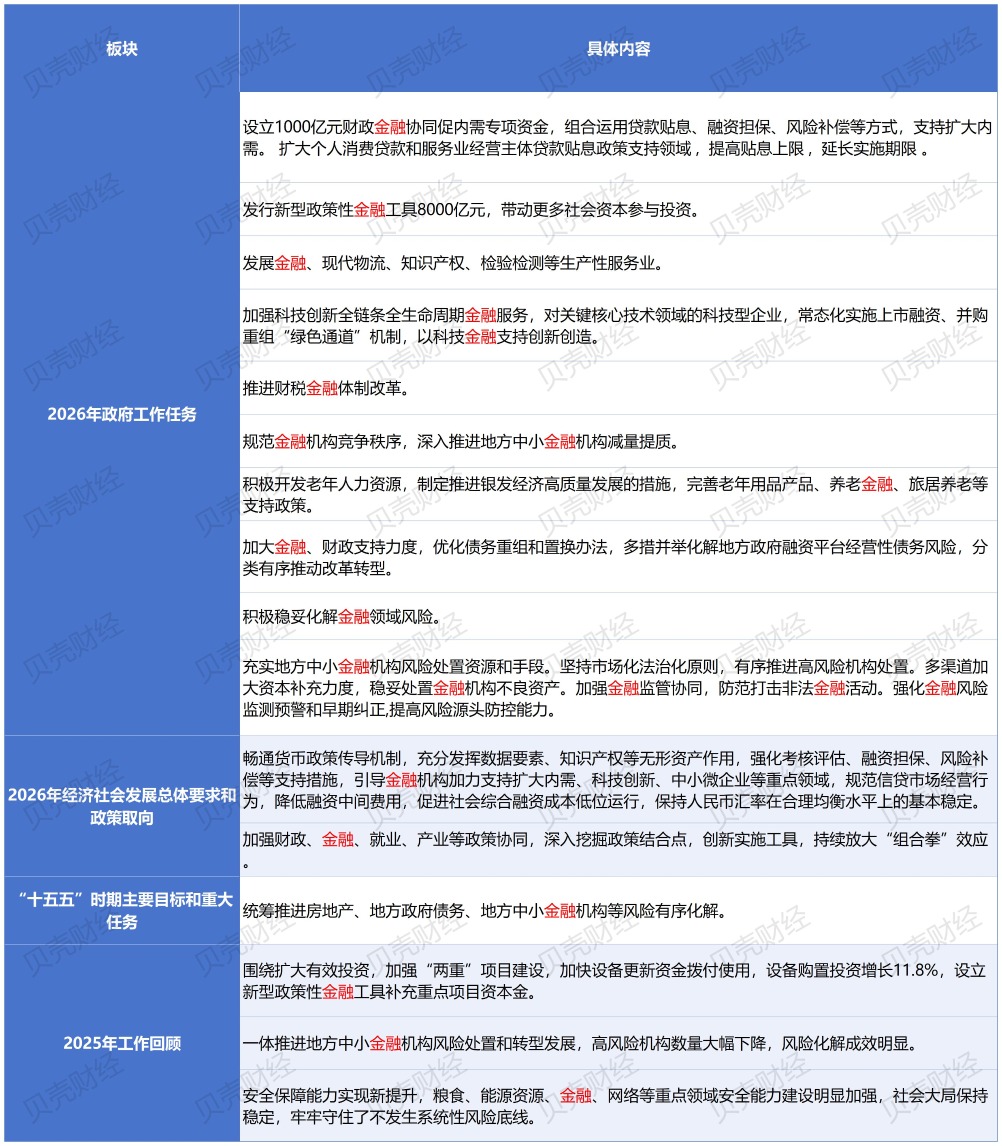 2026年政府工作报告中关于“金融”的内容表述。新京报贝壳财经记者汇总制图