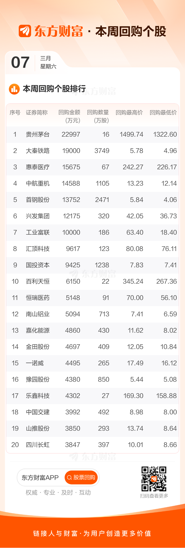 本周贵州茅台披露的回购金额最高,为2.30亿元,大秦铁路排名第二,为1.90亿元。