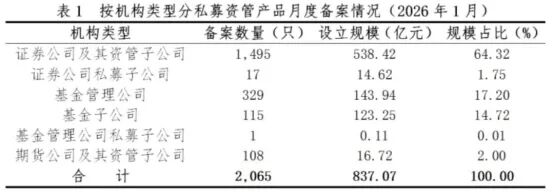 3月6日,中国证券投资基金业协会发布2026年1月证券期货经营机构私募资管产品备案月报。