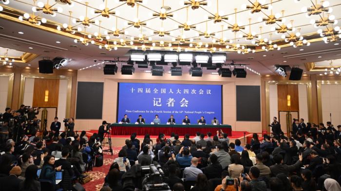 十四届全国人大四次会议在北京梅地亚中心新闻发布厅举行记者会。中新社记者田雨昊