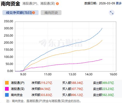 南向资金净买入额达300亿港元