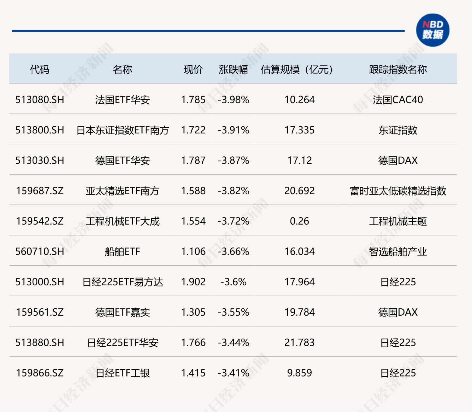 下跌方面,法国、日本、德国相关ETF跌超3%。