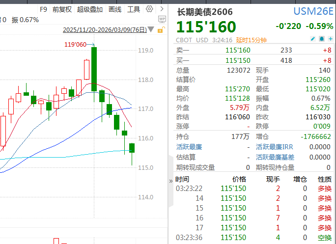 30年期国债期货主力合约盘中最大跌幅超1.2%,最低触及111.36元,为2026年以来最大单日跌幅,最终收跌1.11%报111.52元。与此同时,30年期国债活跃券的收益率日内上行4个基点,接近2.30%关口。