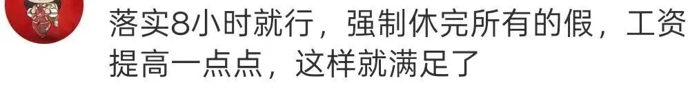 更多网友表示,希望能先落实8小时工作制和双休。