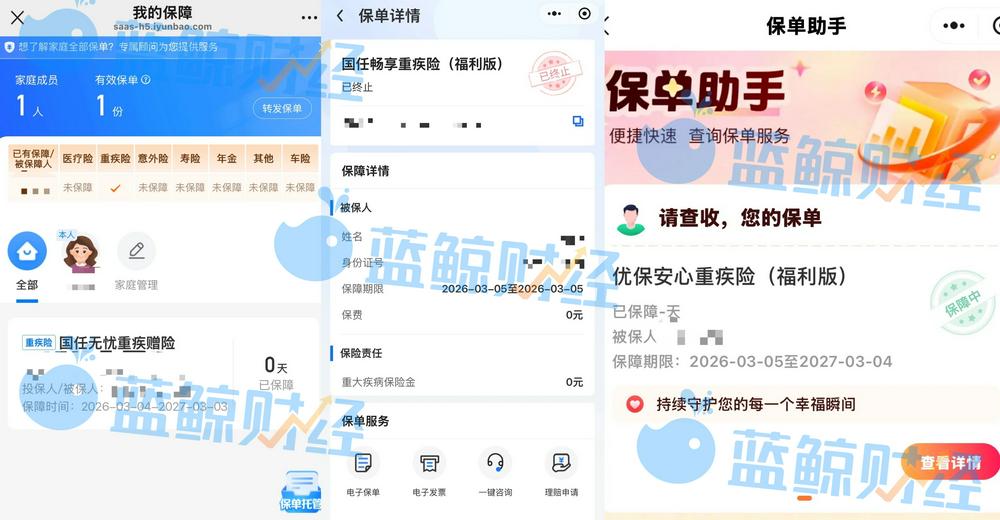 记者发现名下至少3份赠险(图片来源:蓝鲸新闻记者实测截图)