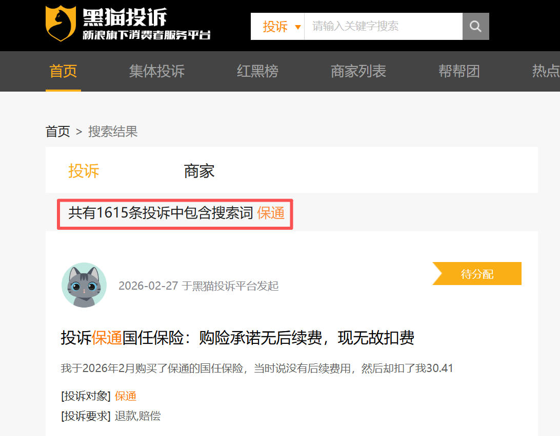 涉及“保通”的投诉(图片来源:黑猫投诉)