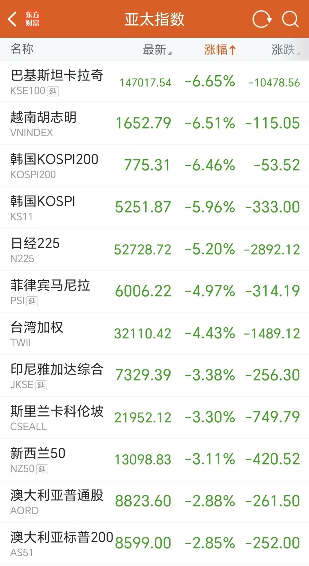 此外巴基斯坦、越南股市跌幅超6%,菲律宾、印尼、斯里兰卡股市跌超4%,新西兰、澳大利亚股市跌幅也超过或接近3%。