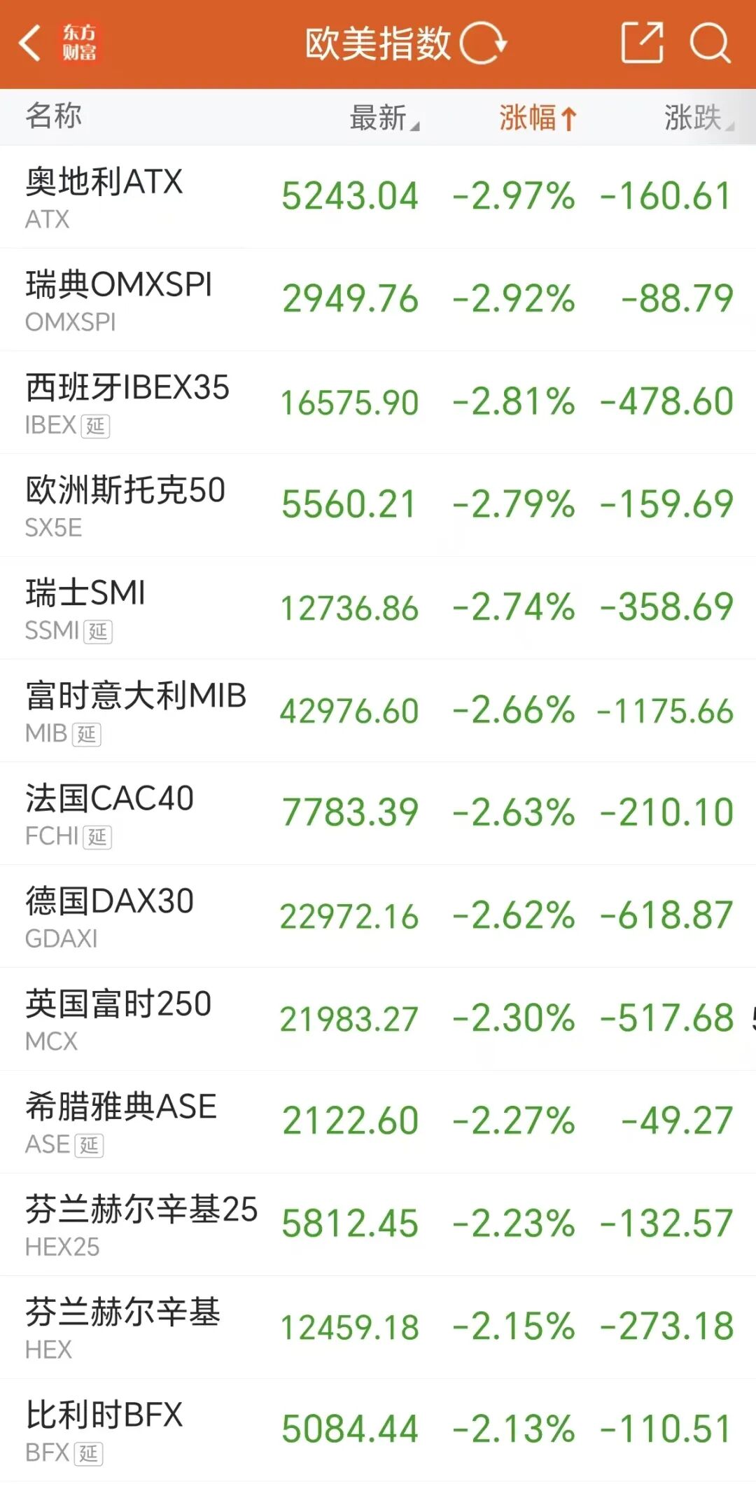 欧洲市场方面,截至发稿,欧洲三大股市指数跌幅也均超2%。