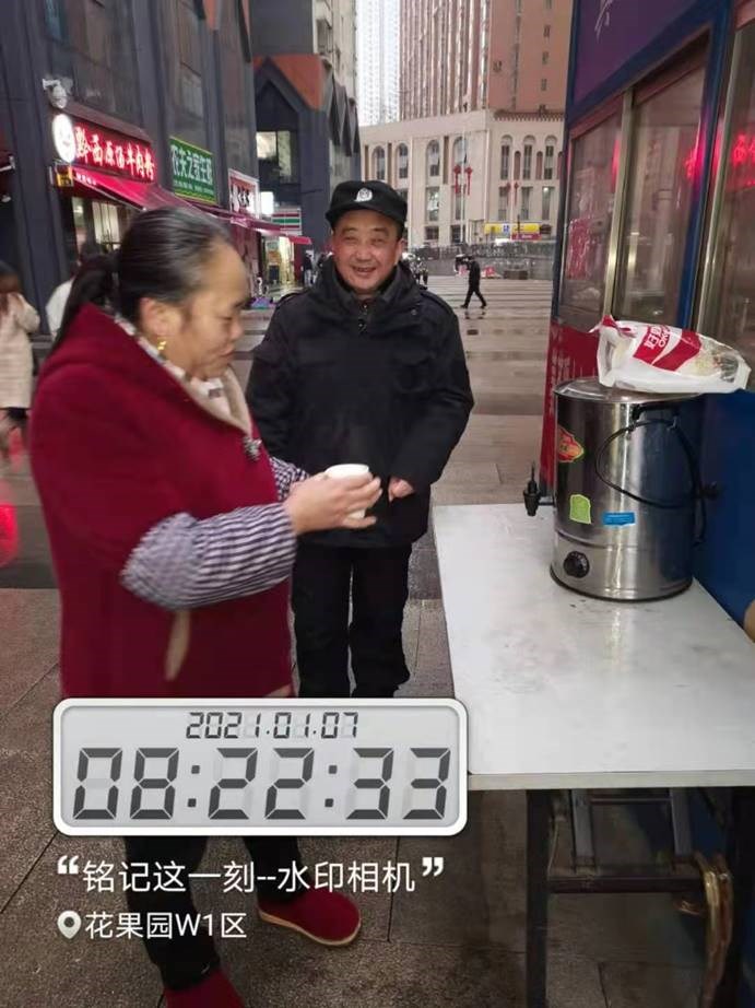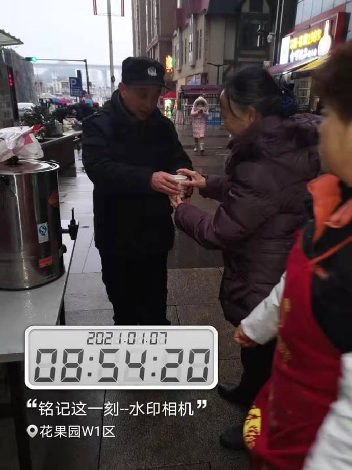 除了撒盐除凝,宏立城集团物业在8点左右的业主出行高峰期,在相关的关键路口,小区平台抬来了姜茶,向每一位路过路口的宏立城集团业主们递上一杯热气腾腾的姜茶,接过姜茶的宏立城集团业主纷纷为宏立城集团物业这一细心的举措举手称赞。