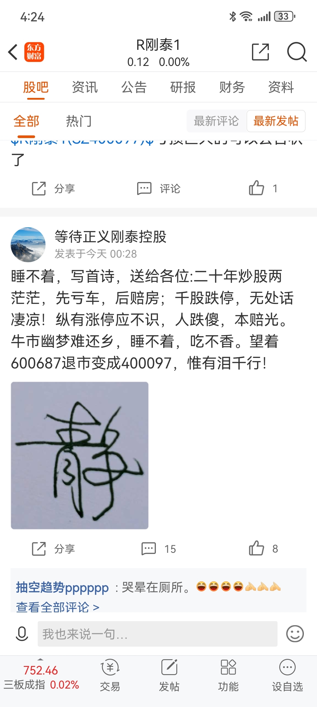 $东方财富全A(ZT800000)$ 大家看看多经典。股市的人才真的是人才。