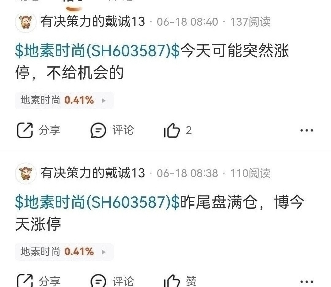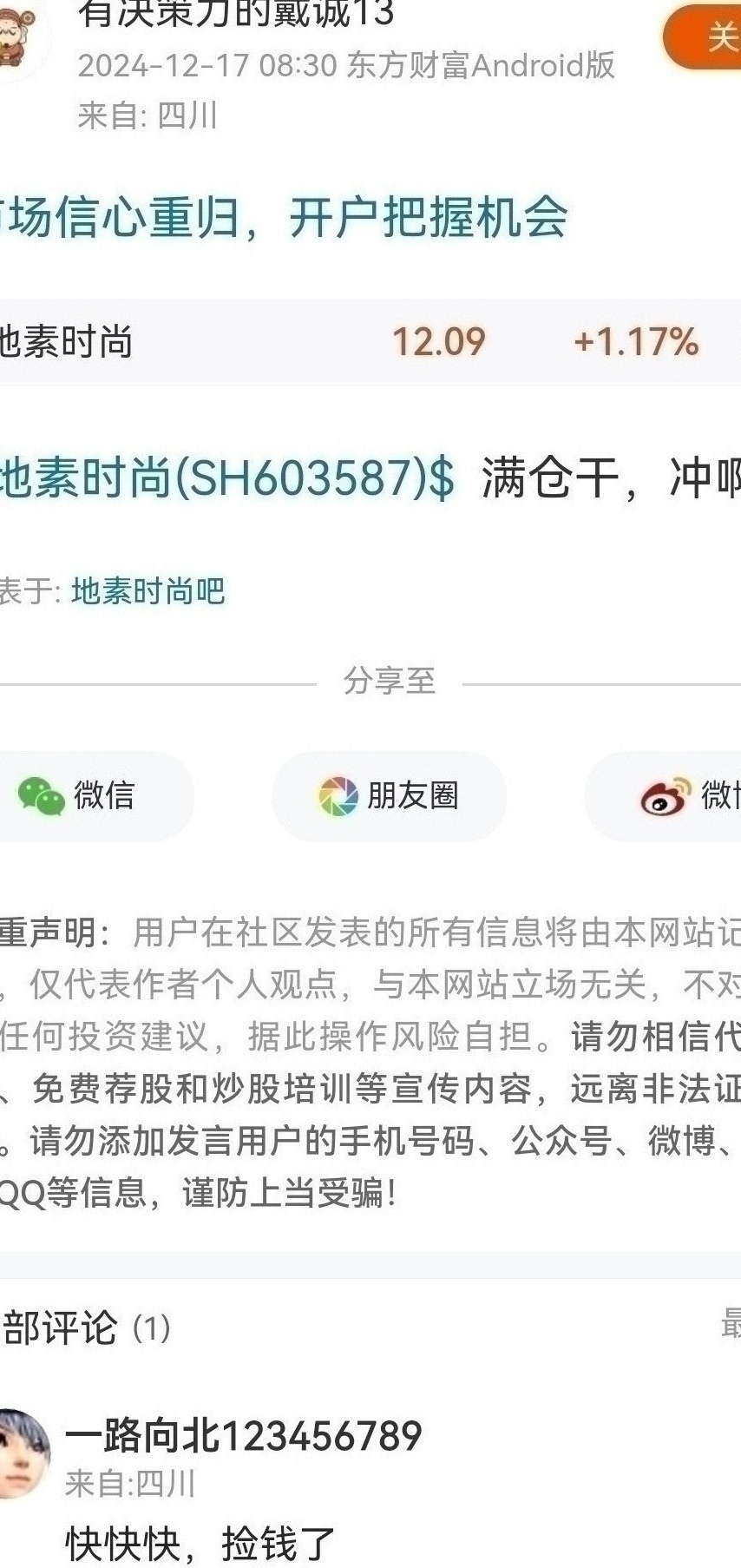 温馨提示: 1.根据《证券法》规定,禁止编造、传播虚假信息或者误导性信息,扰乱证券市场;2.用户在本社区发表的所有资料、言论等仅代表个人观点,与本网站立场无关,不对您构成任何投资建议。用户应基于自己的独立判断,自行决定证券投资并承担相应风险。《东方财富社区管理规定》