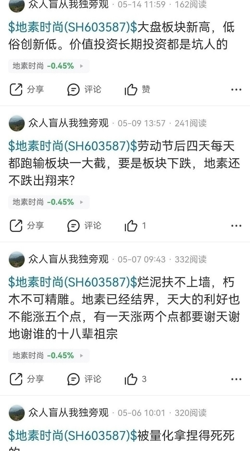 $东财可转债纺织服装指数(ZT881003)$ $地素时尚(SH603587)$ 季线底部中长线至少几倍涨幅,周线上涨趋势今年翻倍,浙江ip想提醒你也是众人盲从的账号,底部踏空后唱空攻击人没有意义,破坏投资环境坚决抵制打击这种行为