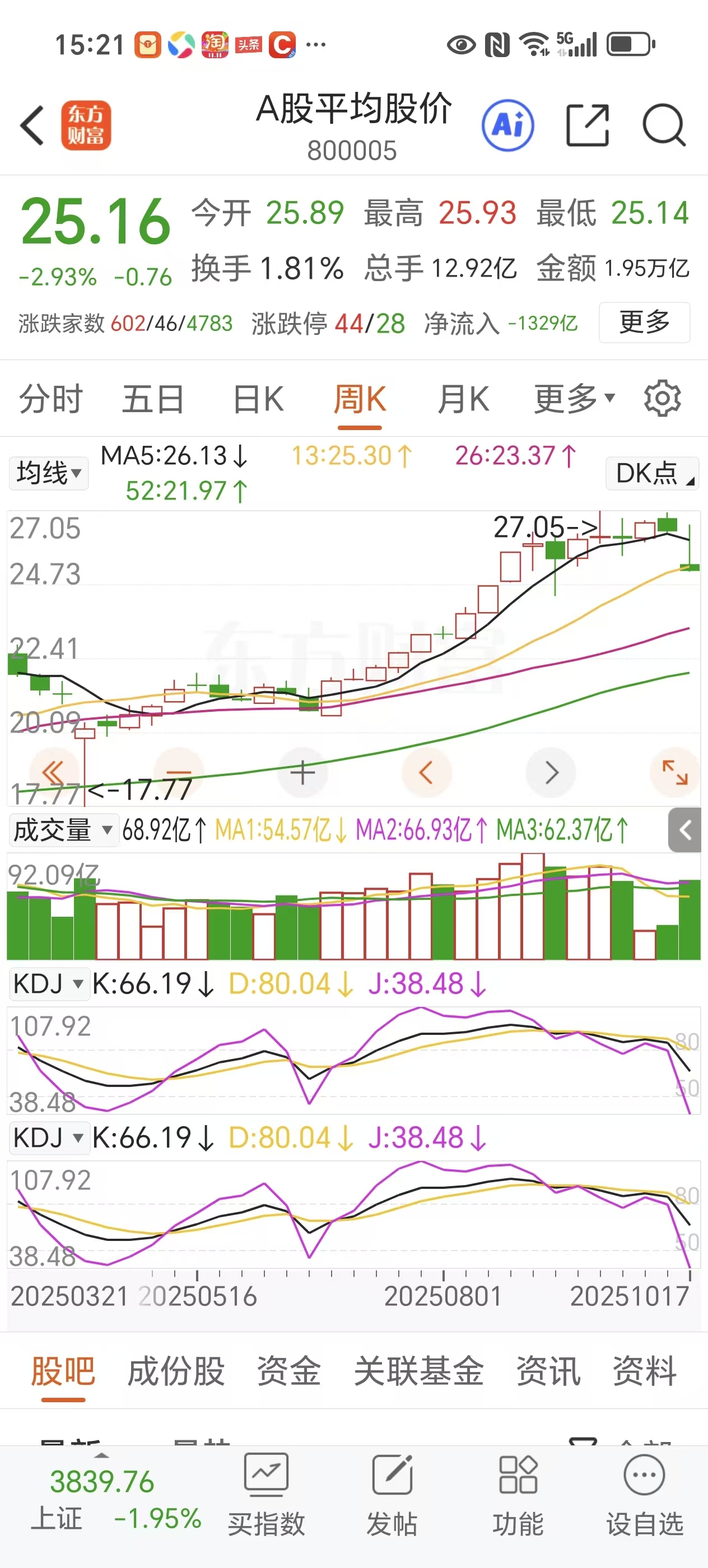 $A股平均股价(ZT800005)$ 这周线收的好难看