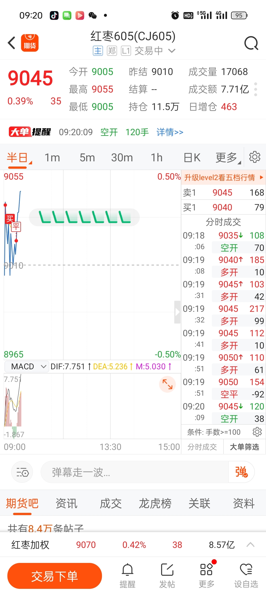 $红枣605(CZCE|CJ605)$ 真搞笑,买涨进来就跌赔3千出掉就上来,哎