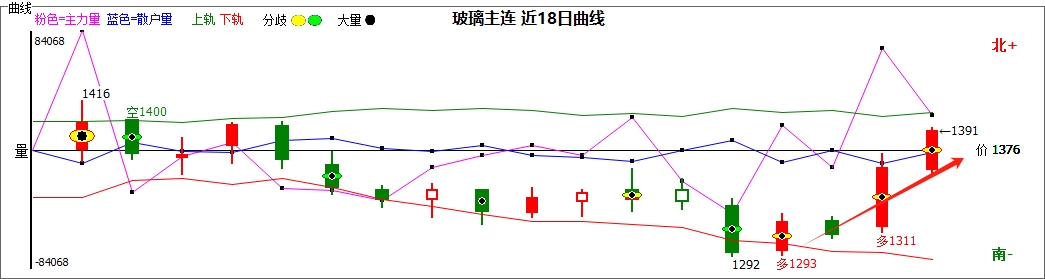 9日分歧后,主力轻微回调一天,今日夜间(13日数据)一根巨大阳线,1372附近是压力山大,不可能马上过去,需要回调几天