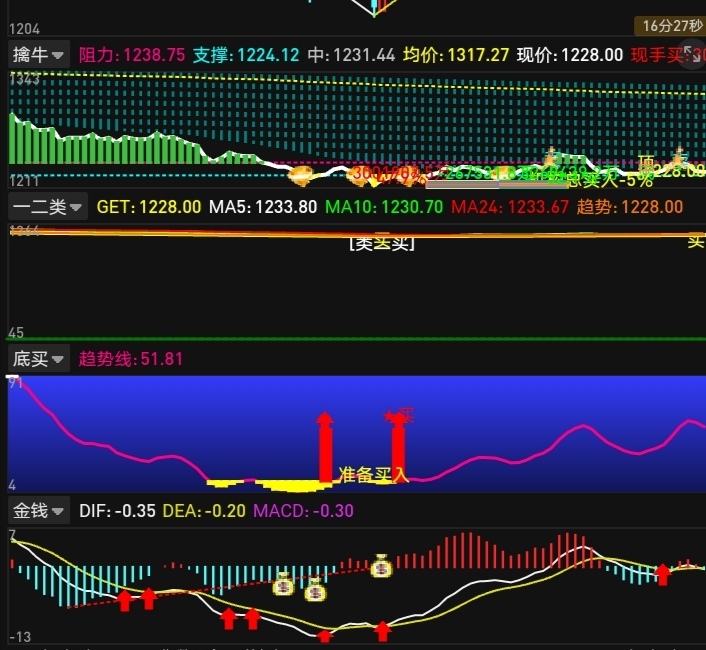 在1200-1225区间轻仓试多单,损50点