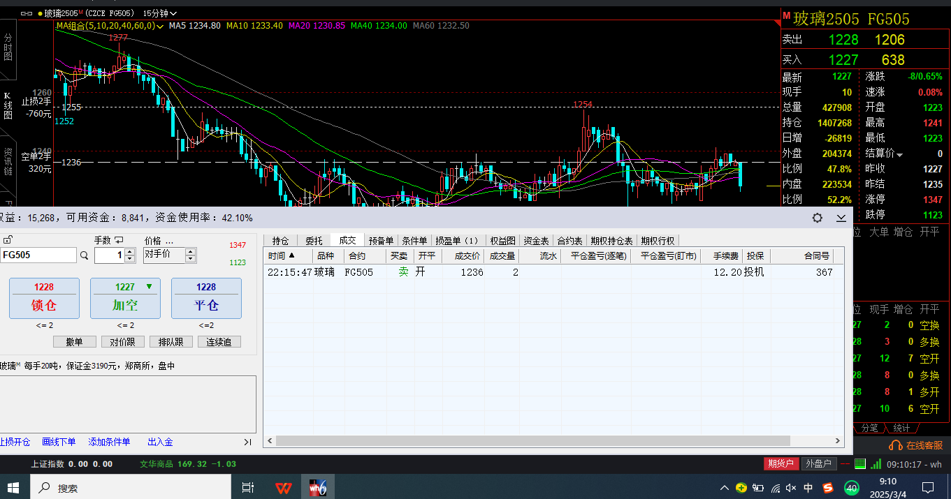 2025年3月3日,22:15, 1236空单两手,止损1254.