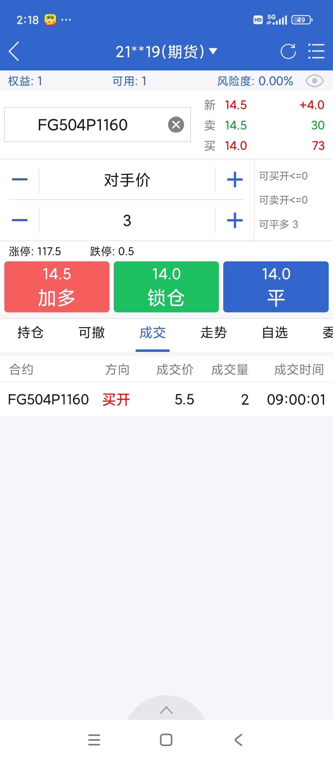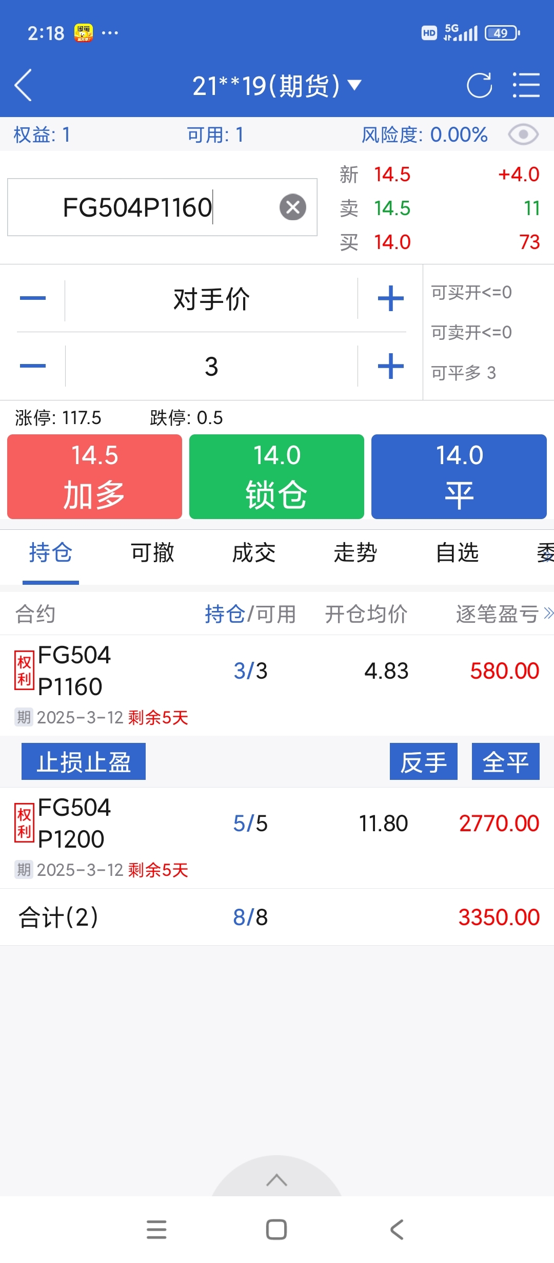 快到一万了,加油,昨天做日结赚了200块钱加仓,504P1160,现在开始盈利了