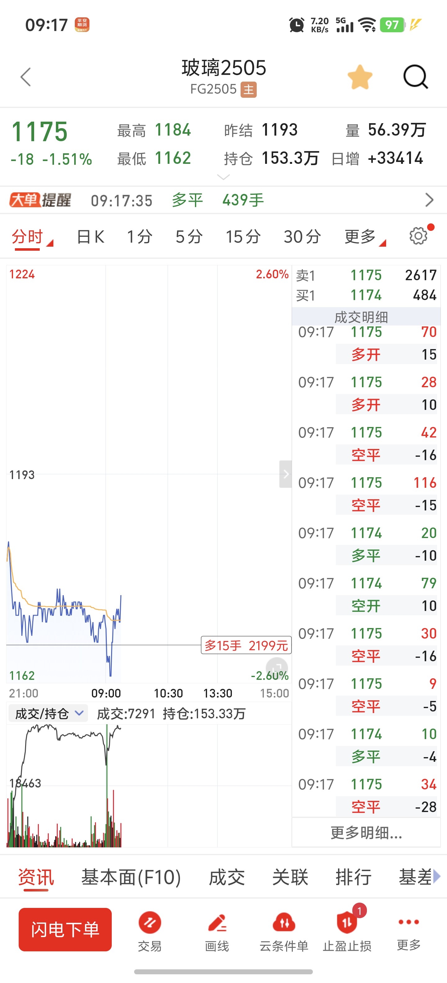 $玻璃505(CZCE|FG505)$ 早盘主力砸个低位接点多单,纯碱也开一些