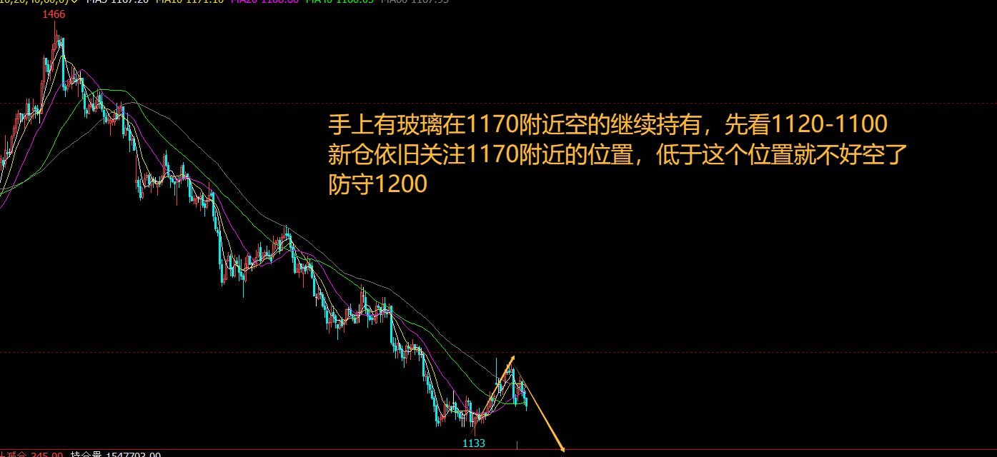 $玻璃505(CZCE|FG505)$ 玻璃05合约:玻璃今天还是下来了,走了两天的震荡,从走势上看玻璃依旧是偏弱格局,未有明显的企稳迹象,手上有在1170附近空的继续持有,先看1120-1100,新仓依旧关注1170附近的位置,低于这个位置就不好空了,防守1200(投资建议 仅供参考 具体以实盘操作为主)